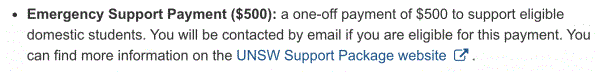 UNSW的同學們有福了!近日,新南威爾士大學校方官宣:受到新冠疫情的嚴重影響,我們知道有很多同學或許面臨經濟困難。為了幫助大家共渡難關,校方將提供緊急補助、代金券、免息貸款等各種經濟補貼支持!